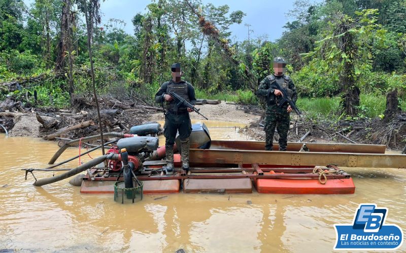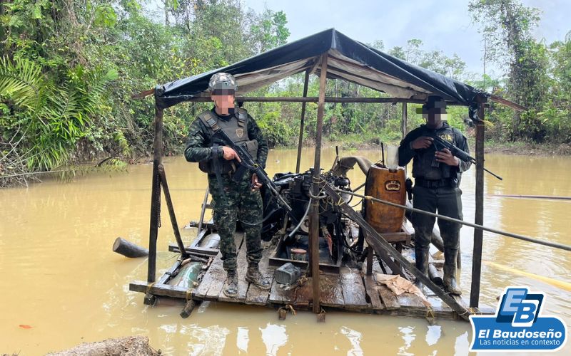 En acción conjunta entre el Ejército Nacional y la Policía Nacional, y en cumplimiento del Plan Estratégico de Campaña Ayacucho Plus, se adelantó una operación militar y policial contra la explotación ilícita de yacimientos mineros, así como contra el daño ambiental que estas prácticas ocasionan en zonas rurales de los municipios de Quibdó y Carmen de Atrato.