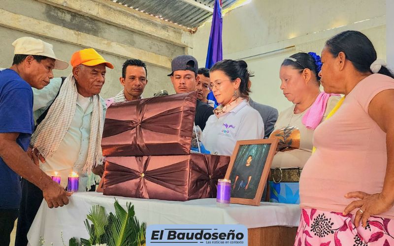 La ceremonia de entrega digna de Nicolás continuó tal y como su familia había pedido: primero, un culto en honor a su vida; luego, la entrega de la verdad a la familia, mostrando las partes recuperadas de su cuerpo. Algunos participantes dejaron mensajes de amor para Nicolás en una tela blanca que simbolizaba el cierre de un ciclo. Al final del día, hicieron una caminata hasta el cementerio de Nuevo Belén de Bajirá. Allí, su madre, la señora Emilia María Espitia Hernández, miró el lugar donde su hijo sería inhumado y, con gratitud, dijo: “Abajito, donde va a estar mi hijo, enterramos hace unos meses a mi hermana. Ahora van a estar juntos”. Su tono de voz dejó claro que, para esta familia, estar unidos lo era todo.