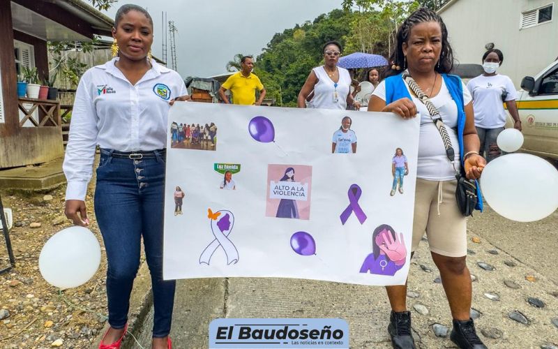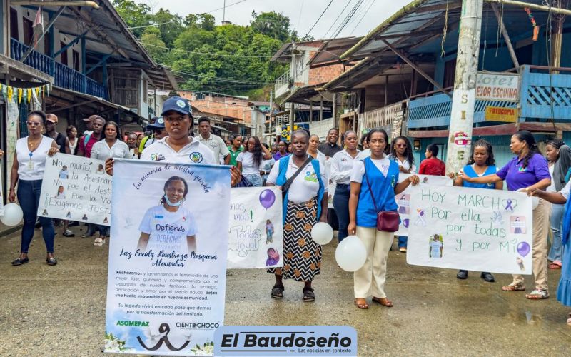 Con globos blancos y carteles de reflexión, las y los participantes caminaron en silencio desde la IPS Servisalud hasta la Iglesia de Puerto Meluk, donde se llevó a cabo una misa en memoria y reflexión. Especialmente por femicidio de la Lideresa Luz Eneida Hinestroza Mosquera, mas conocida como; (Alexandra), el pasado 13 de octubre de 2025.