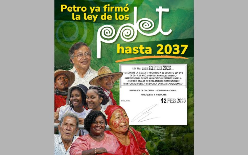 Presidente Petro firma Ley que extiende la vigencia de los 170 municipios PDET hasta el 2037. Desde la firma del Acuerdo de Paz (2016) a través de las diferentes fuentes de financiación (SGP, Regalías… 13 febrero, 2026