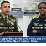 Suspenden a mayor de la Policía tras polémico procedimiento en Quibdó El reciente procedimiento policial que ha generado controversia en la ciudad de Quibdó sigue produciendo consecuencias dentro de… 13 marzo, 2026 Niña Indígena fue reportada como desaparecida en el municipio de Bahía Solano – Chocó. La Personería Municipal de Bahía Solano activó el Mecanismo de Búsqueda Urgente para dar con el paradero de… 13 marzo, 2026 Hospital San Francisco de Asís pone en funcionamiento servicio de endoscopia con tecnología de punta. Jornada especial este fin de semana con la cirujana gastrointestinal chocoana Dra. Amy del Mar Piñeres Salazar marca… 13 marzo, 2026 El Ministerio de Vivienda Ciudad y Territorio, la Gobernación del Chocó, el Plan Departamental de Aguas y el municipio de Lloró, se unieron para llevar agua potable a comunidades rurales indígenas y afros del municipio de Lloró. La Viceministra de Agua Potable y Saneamiento Básico, Ruth Quevedo, el Gerente de Aguas del Chocó Salatiel Mosquera… 12 marzo, 2026 Procuraduría levanta suspensión provisional al alcalde de Carmen del Darién investigado por presunta participación en política. La Procuraduría General de la Nación, a través de la Procuraduría Regional de Instrucción del Chocó, decidió levantar… 12 marzo, 2026