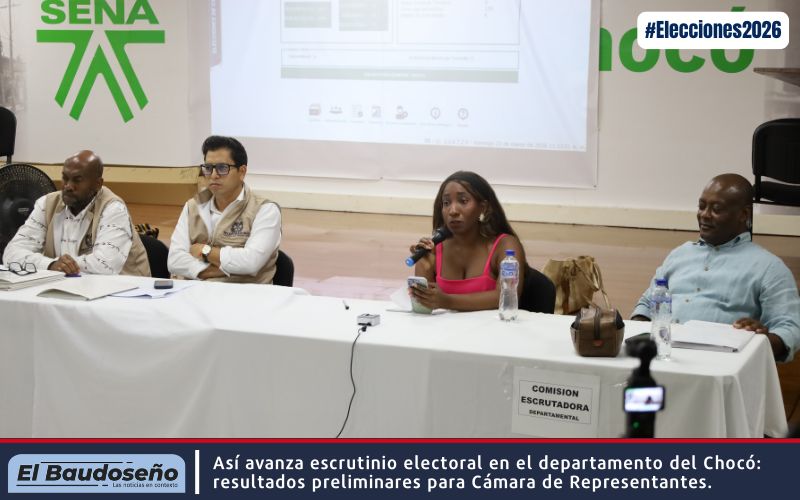 Así avanza el escrutinio electoral en el Chocó: resultados preliminares para la Cámara de Representantes. #Elecciones2026 || Quibdó, 22 de marzo de 2026.Tras la culminación del escrutinio general de las elecciones al Congreso… 23 marzo, 2026 Quibdó avanza en la construcción de paz con Mesa Técnica de Seguridad y Protección Paz y Derechos Humanos, Quibdó, Chocó || En el marco del Espacio Sociojurídico de Paz Urbana, se llevó… 20 marzo, 2026 Puerto Conto le hace frente a las inundaciones: comunidad avanza hacia un futuro más seguro La comunidad del corregimiento de Puerto Conto, en el municipio de Bojayá - Chocó, comienza a ver resultados… 20 marzo, 2026 Fortalecen respuesta institucional ante crisis humanitaria en Bajo Baudó, Chocó Bajo Baudó, Chocó || En medio de la compleja situación humanitaria que enfrentan varias comunidades del municipio, el… 20 marzo, 2026 Monitoreos liderados por CODECHOCÓ, en articulación con la comunidad, reportan 15 arribos de tortuga Caná en lo corrido de la temporada de anidación en las playas de Acandí. Como resultado de las acciones de monitoreo y control que se adelantan en el sector del Playón, en… 20 marzo, 2026