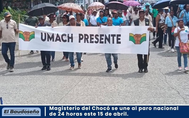 Prosperidad Social inicia el tercer ciclo de transferencias de Colombia Mayor. La jornada de entrega de los recursos se realizará desde el 17 de abril hasta el 4 de… 13 abril, 2026 Magisterio del Chocó se une al paro nacional de 24 horas este 15 de abril. La Unión de Maestros del Chocó -"UMACH", en cumplimiento de las directrices de la Federación Colombiana de Trabajadores… 13 abril, 2026 Tres capturas y un menor aprehendido en operativos contra el porte ilegal de armas en Quibdó – Chocó. La Policía Nacional, en el marco de las acciones operativas adelantadas para la prevención y control del delito,… 13 abril, 2026 Continúa abierta la convocatoria del Premio Emprender Paz para empresas que generan desarrollo e inclusión desde sus modelos de negocio. Las empresas tienen hasta el 30 de abril de 2026 para inscribir iniciativas que integren a poblaciones vulnerables… 13 abril, 2026 Incautan dos excavadoras por falta de documentación en Istmina, Chocó. Istmina, Chocó || En el marco de operaciones de control territorial, tropas del Batallón de Ingenieros Militares N.°… 13 abril, 2026
