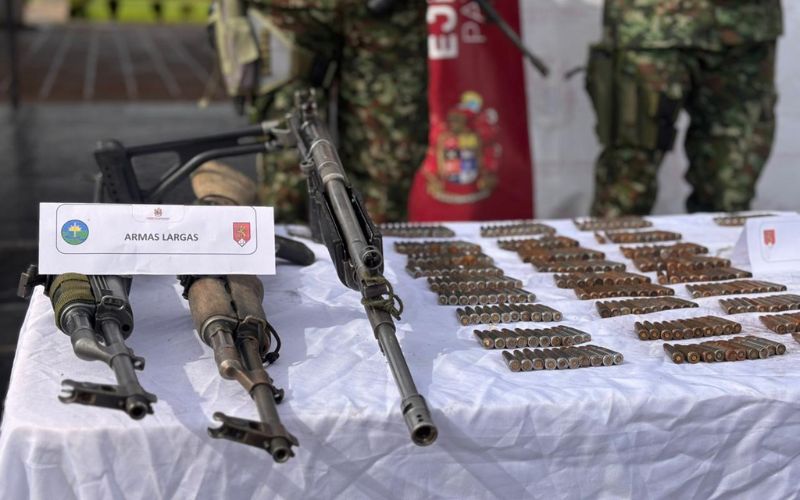 Un total de 12 proveedores, tres armas largas, dos fusiles AK 47, un fusil Galil Ar, cuatro radios scanner, cuatro equipos de intendencia, dos chalecos con sus respectivas dotaciones, un radio base, una granada de mano, abundante documentación y munición calibre 5.56 y 7.62, fue el saldo de material incautado en esta operación, cuyo objetivo es debilitar la capacidad de la amenaza.